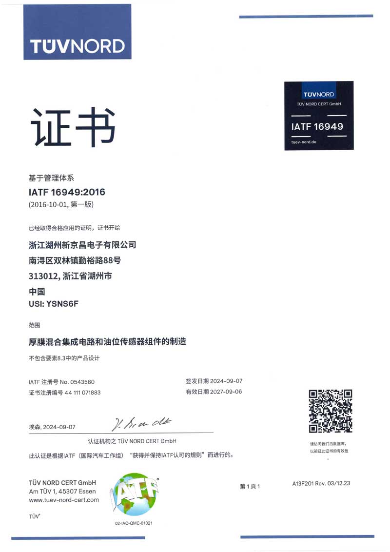 IATF16949證書(shū)